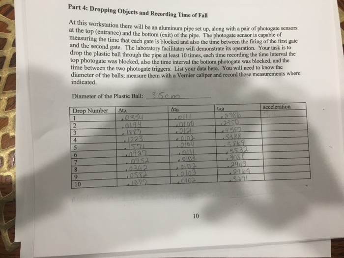 Solved Part 4 Dropping Objects And Recording Time Of Fal